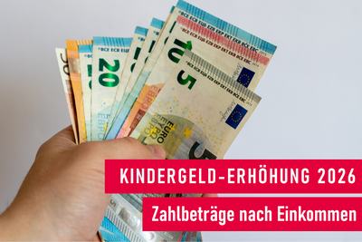 Zum 1. Januar 2026 wurde das Kindergeld bundesweit auf 259,00 Euro pro Kind und Monat angehoben. Die Erhöhung des Kindergeldes wirkt sich unmittelbar auf die Höhe des zu zahlenden Kindesunterhalts aus.